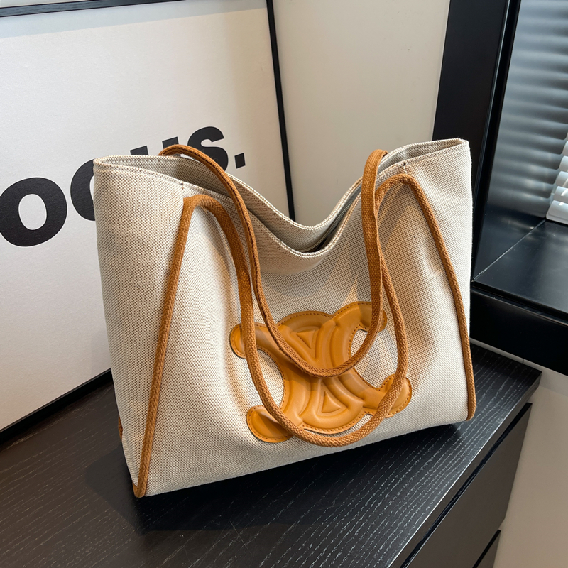 French niche canvas bag women's 2025 new fashionable large-capacity underarm bag versatile one-shoulder commuter tote bag