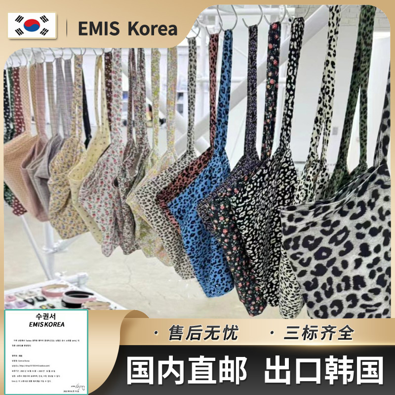 Zhao Lusi same emisKorea exported Korean leopard print bag women's bag corduroy shopping bag shoulder canvas bag