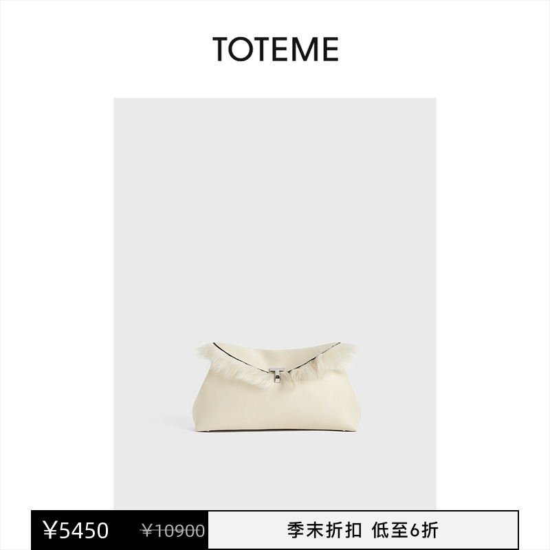 【End of Season Discount】TOTEME Women's Bag Beige Spliced Shearling Leather T-Lock Clutch