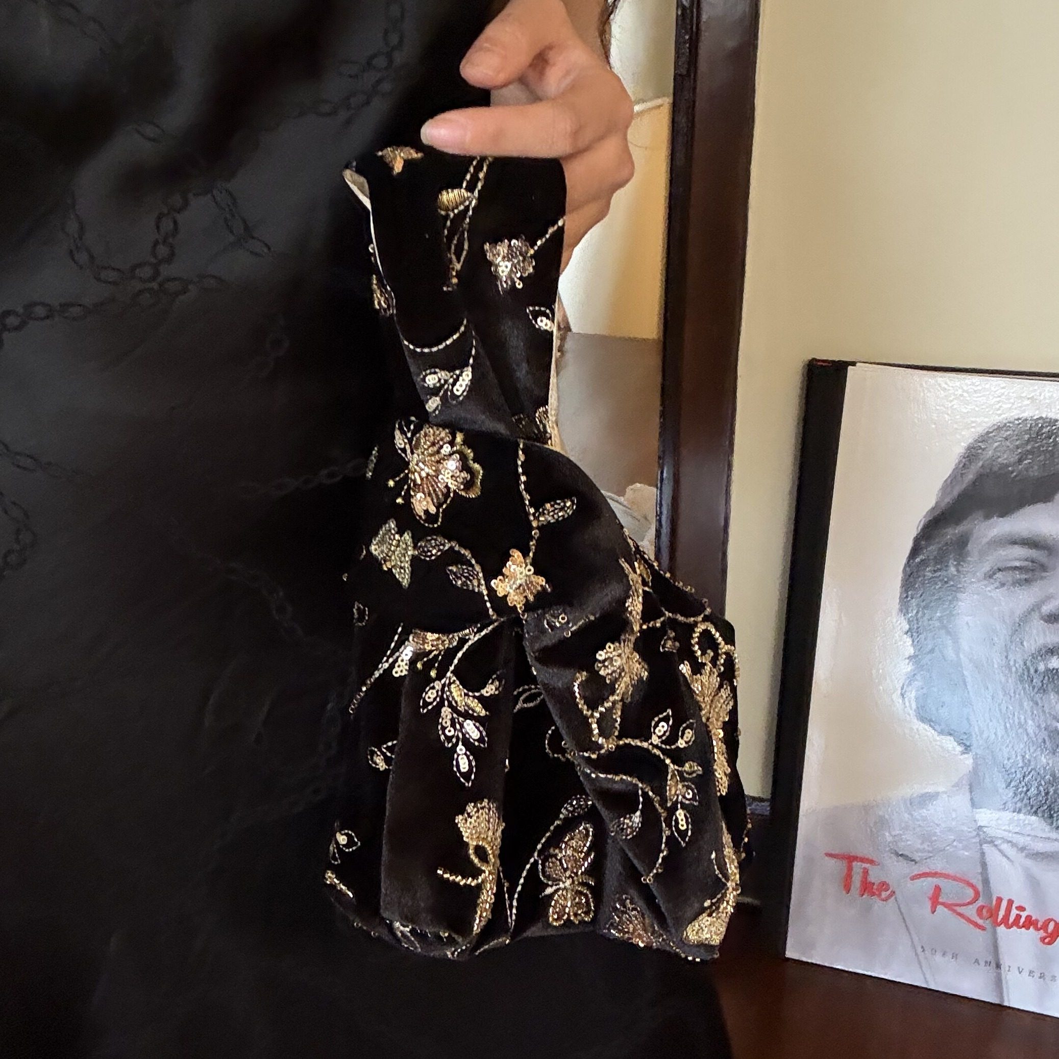 Original design new heavy nail bead gold butterfly velvet high-end vintage handbag dinner handbag handbag