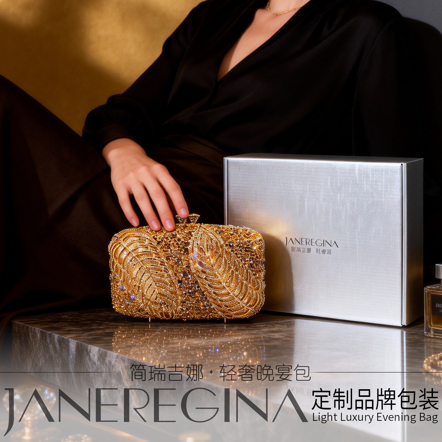 Haute couture dress with dinner bag clutch bag women's light luxury wedding cheongsam bag gold rhinestone banquet grab bag