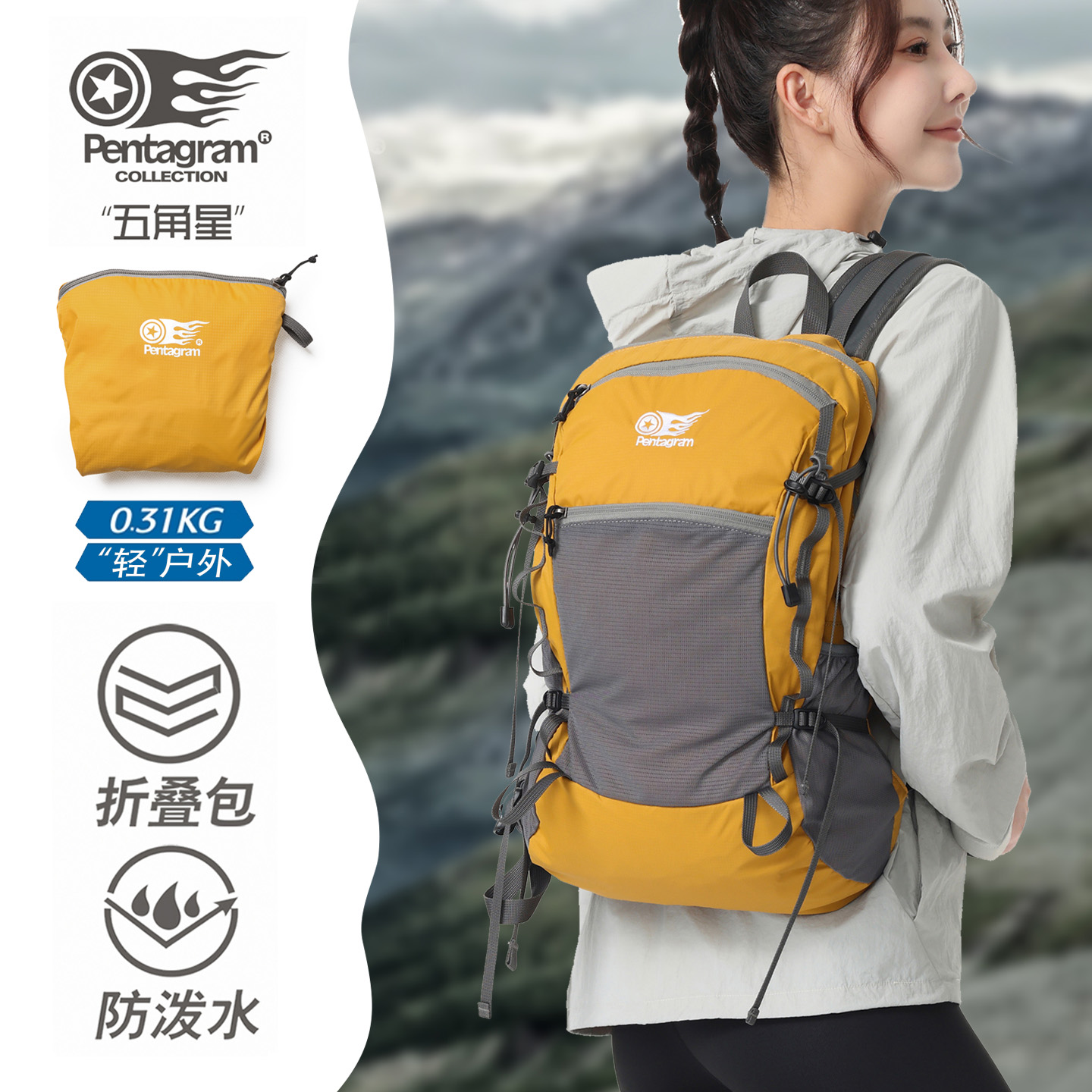 Pentagram pentagram men's and women's lightweight shoulder mountaineering trip outdoor folding backpack topping storage bag 19L
