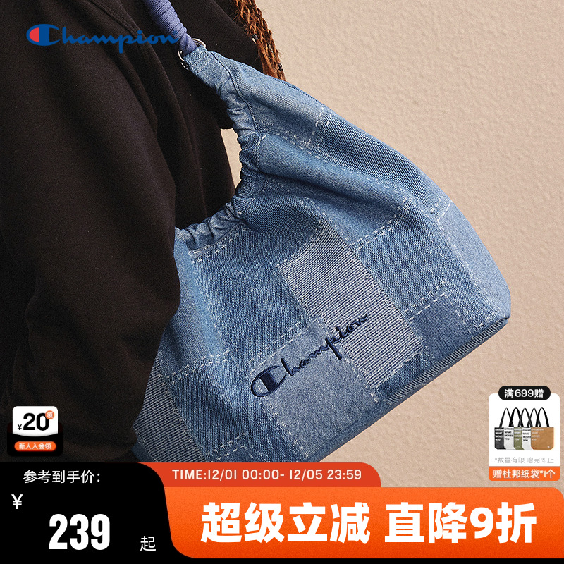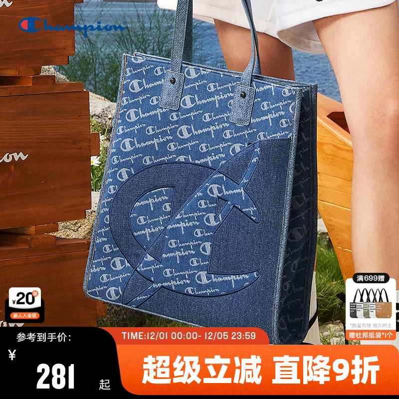 Champion tote bag women's 25 autumn and winter new denim full print presbyon tote bag large capacity commuter bag