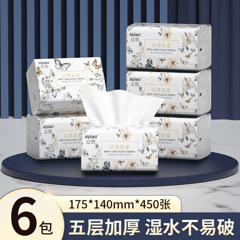 Silk driftwood pulp large size 5 layers 450 sheets 1/3/6 four-sided embossed drawing paper household toilet paper large bag affordable pack