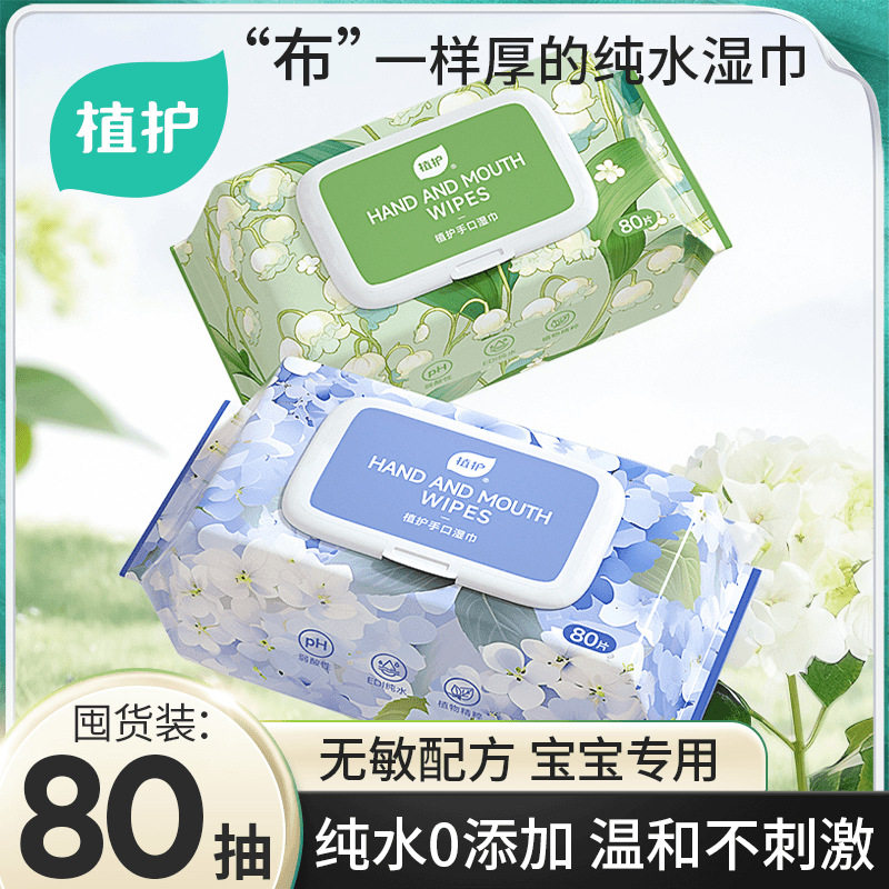Plant protection pure water wet towel baby adult hand and mouth research cleaning wet paper towel family bag 80 wet towel