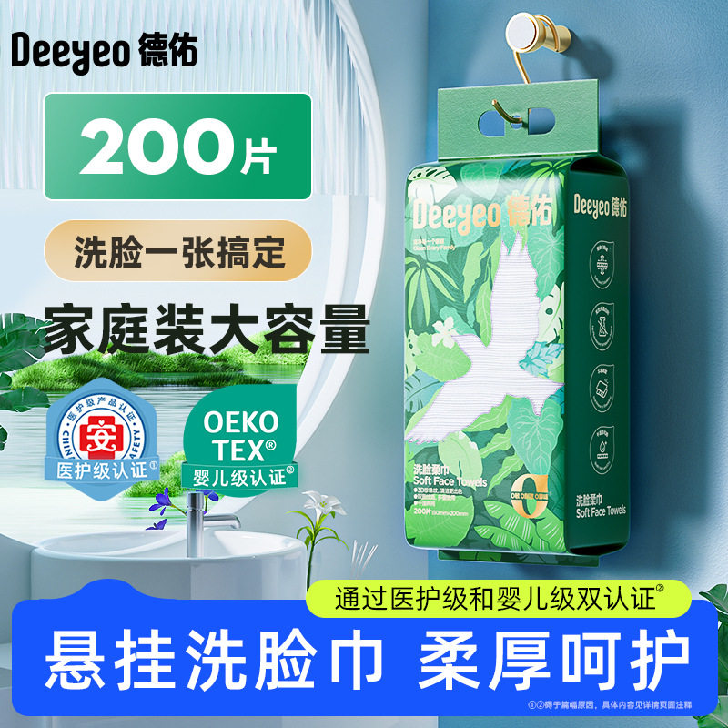 Deyou Asuka hanging face towel 200 pieces, extract dual-purpose makeup remover face towel to thicken and enlarge without hair loss