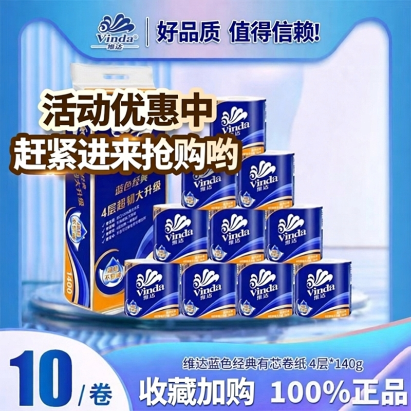 Vinda Sanitary Roll Paper Blue Classic 4 Layers 140g 10 Rolls Household Toilet Paper Sanitary Roll Paper Towels in Stock