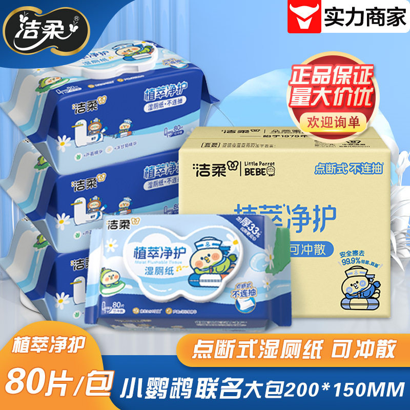 Jierou Plant Extract Wet Toilet Paper Parrot Co-branded 80 Pieces Wet Wipes for Wiping Buttocks (4 Packs/Box) JS305-04E
