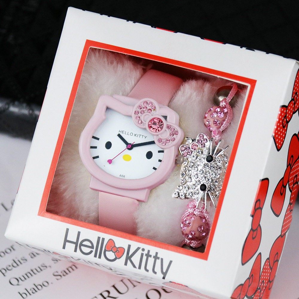 kt cat gift kids kitty watch quartz watch bracelet two piece box set elementary school student decoration watch toy