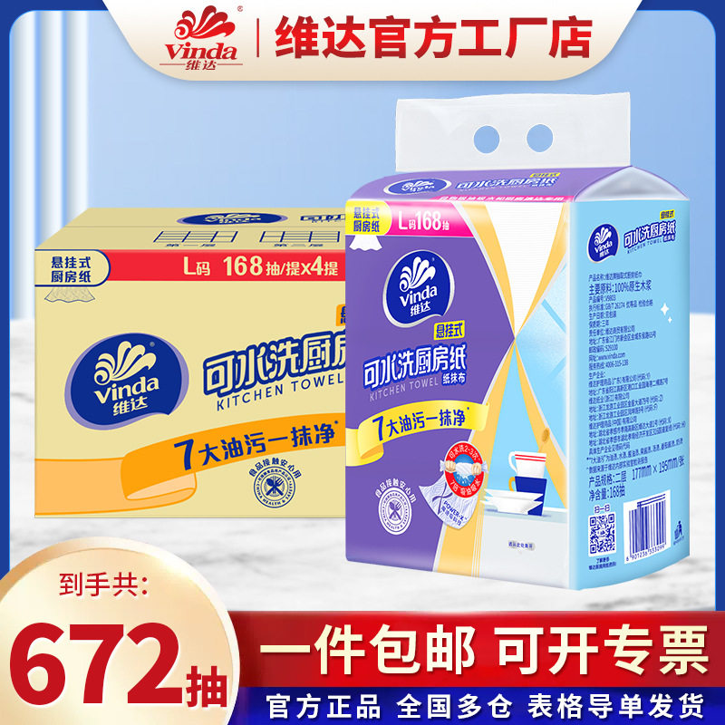 Vinda Hanging Paper Drawer Kitchen Toilet Paper Large Pack 168 Draw 2 Layers Affordable Absorbent Paper for Household Use
