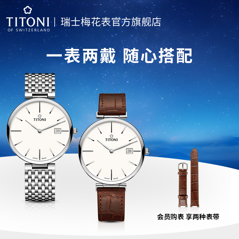 Titoni Swiss Plum Watch Men's Watch Slim Series Automatic Mechanical Watch Stainless Steel Official Flagship Store