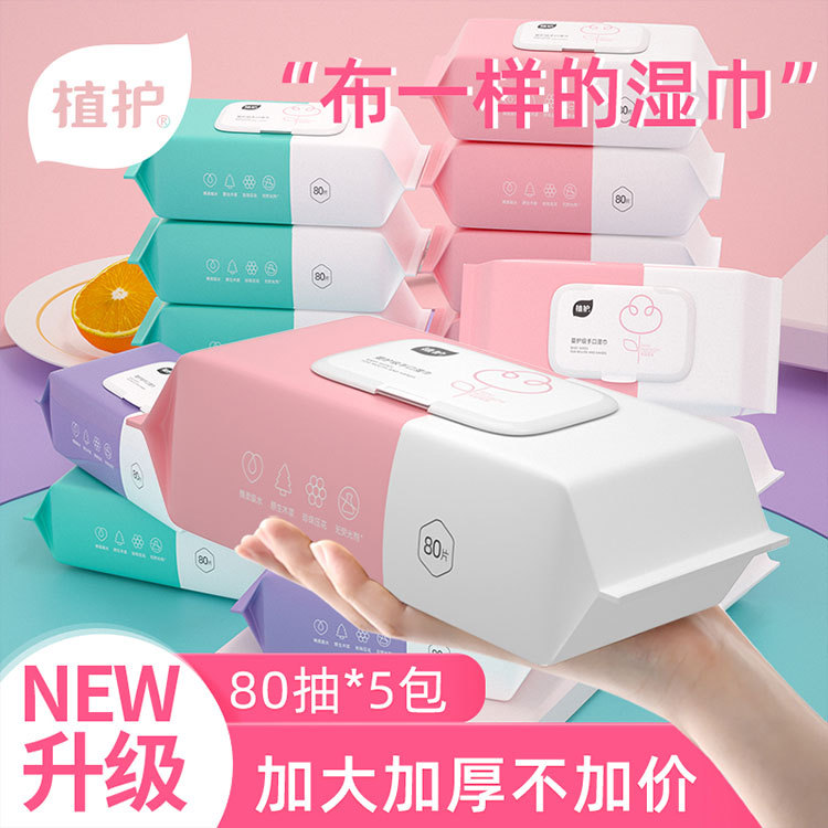 Plant Protective Wet Towel Baby 80 Draws*5 Packaging Hand and Mouth Wet Tissue Baby Disposable Cleaning Wet Tissue with Lid