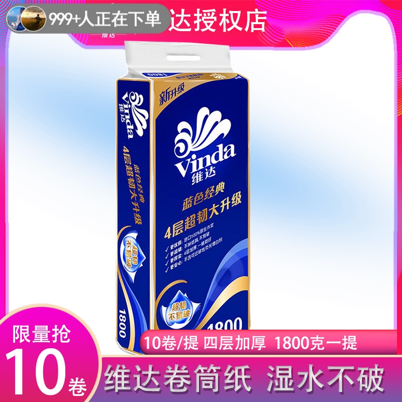 Factory price direct sales Vinda 4 layers 1800g classic roll paper towel v4028 household toilet paper 10 rolls 1 mention household paper