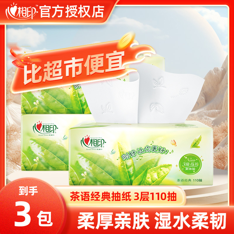 Heart Print Drawing Paper Tea Series Paper Towels 3 Layers Thickened Household Tissue Toilet Paper 110 Draws