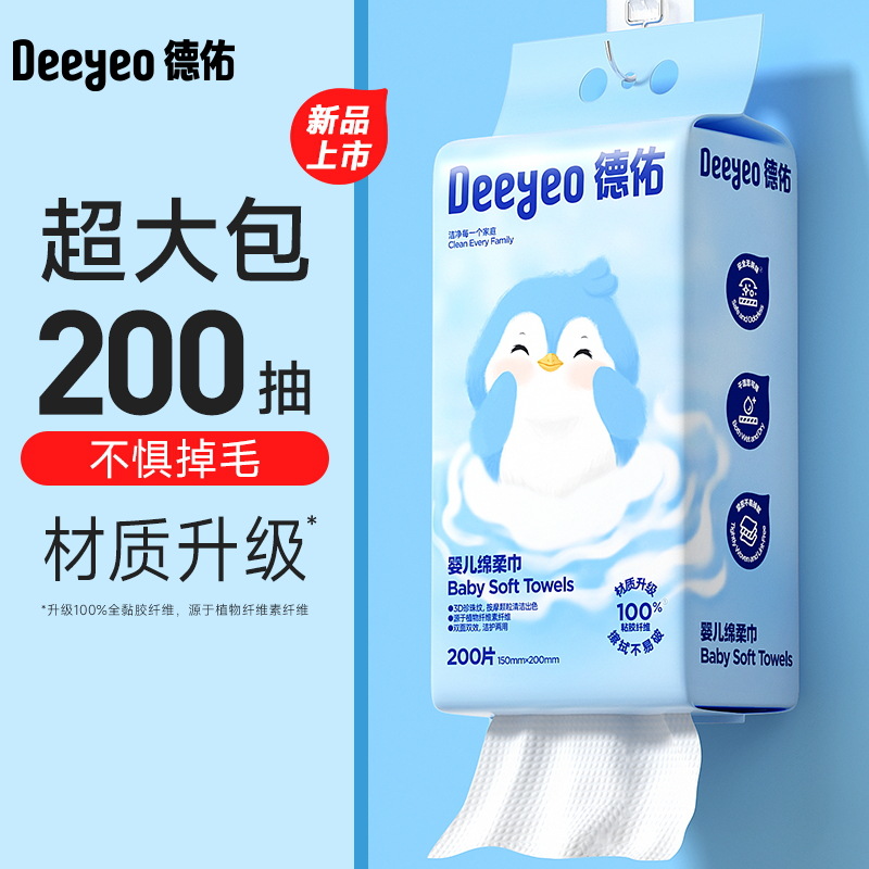 Deyou baby soft towel disposable face towel wall hanging face towel hanging cleaning towel 200 pieces