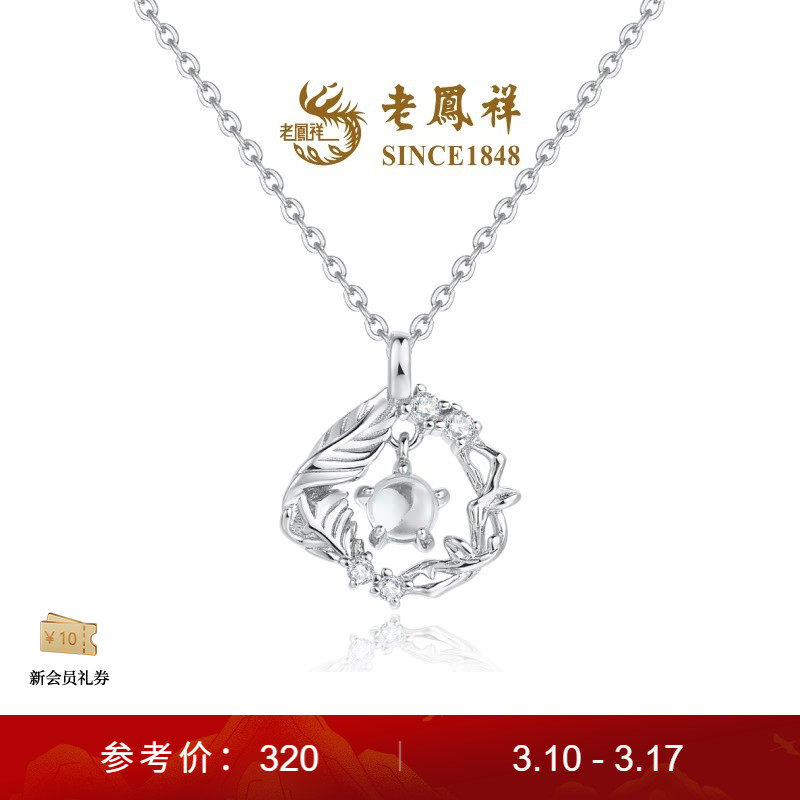 Lao Fengxiang feather feather feather cutout irregular cutout 925 silver necklace collarbone chain gift