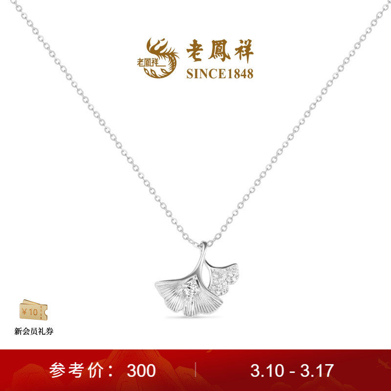 Lao Fengxiang Sansheng is fortunate to have a three-dimensional ginkgo biloba 925 silver necklace holiday women's gift