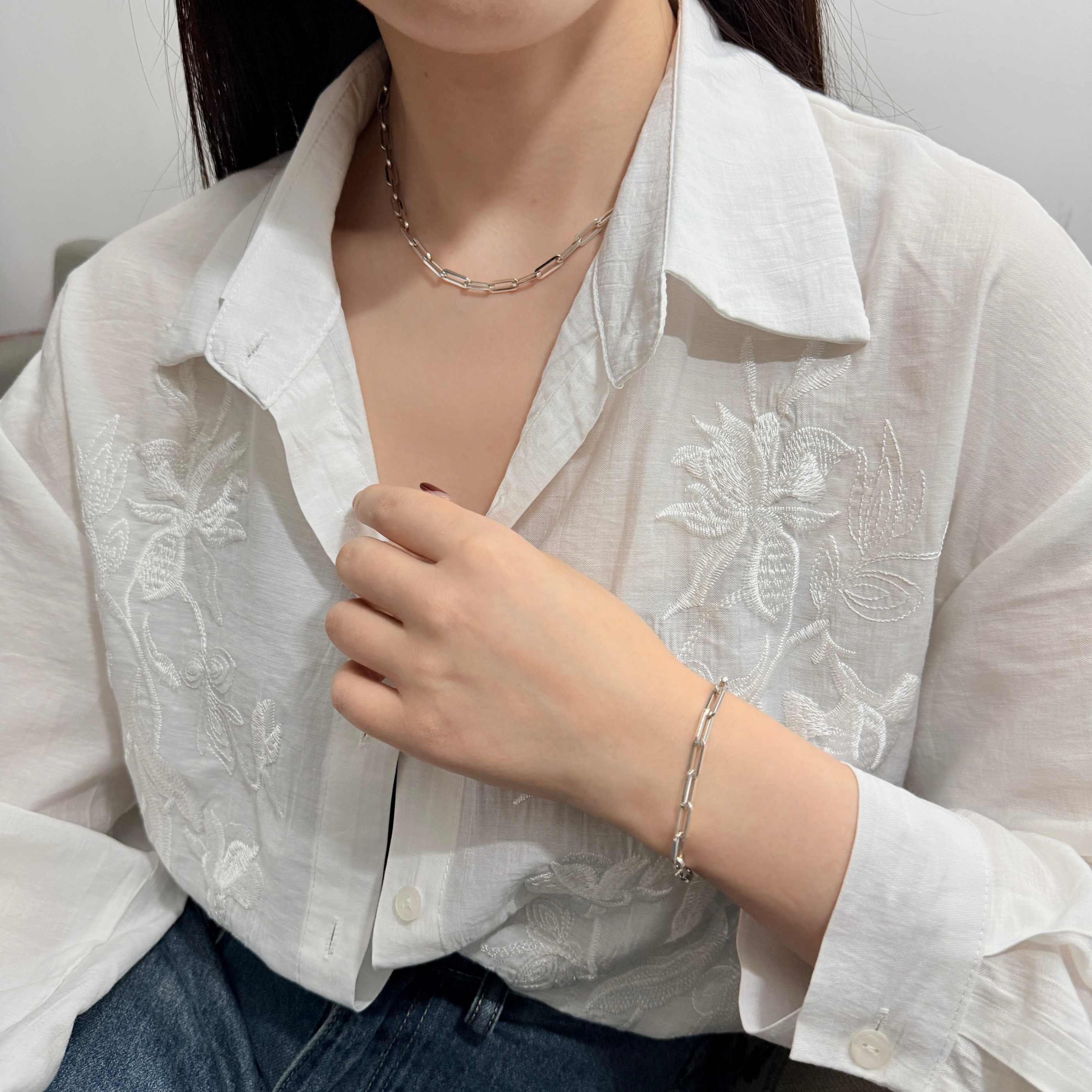 925 silver Italy imported simple cross chain paper clip card card plain silver necklace European and American necklace