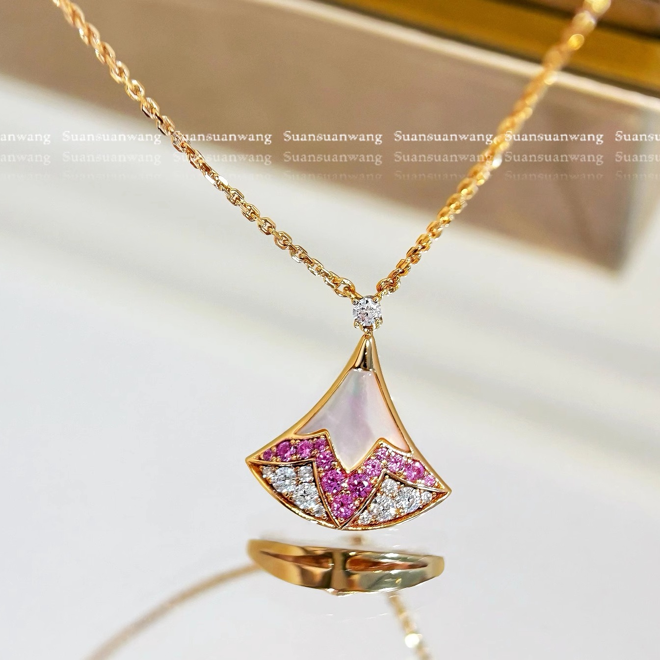 Beautiful new model! White Fritillaria Rose Gold Pink Diamond-Encrusted Scalloped Skirt Pendant Necklace Silver Thick Plated 18k