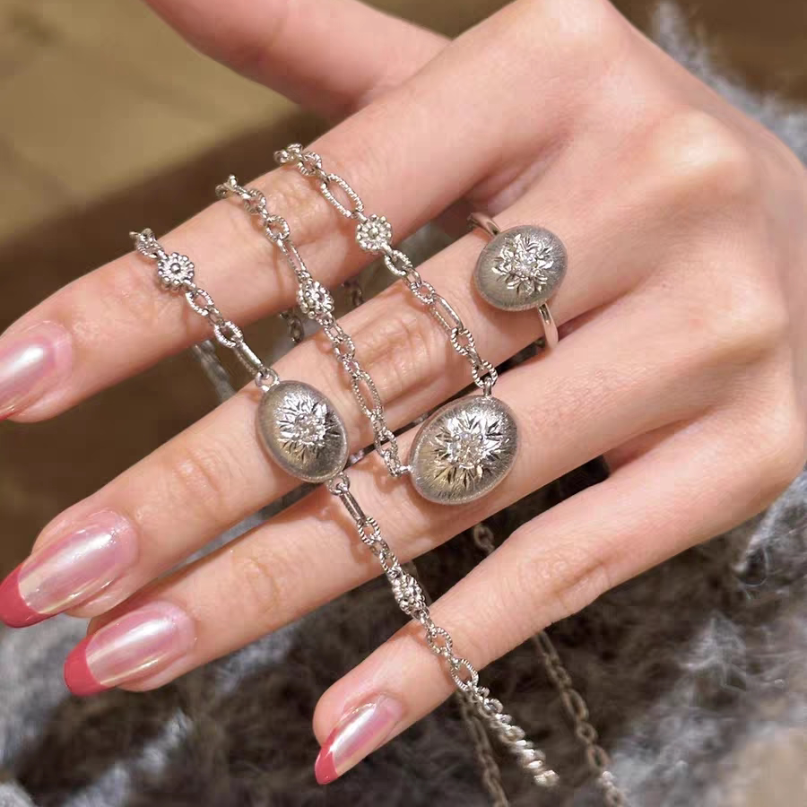AHCHOO Quiet Luxury Ancient Hand Brushed S925 Sterling Silver Zircon Road Road Necklace Transfer Bead Clavicle Chain Women