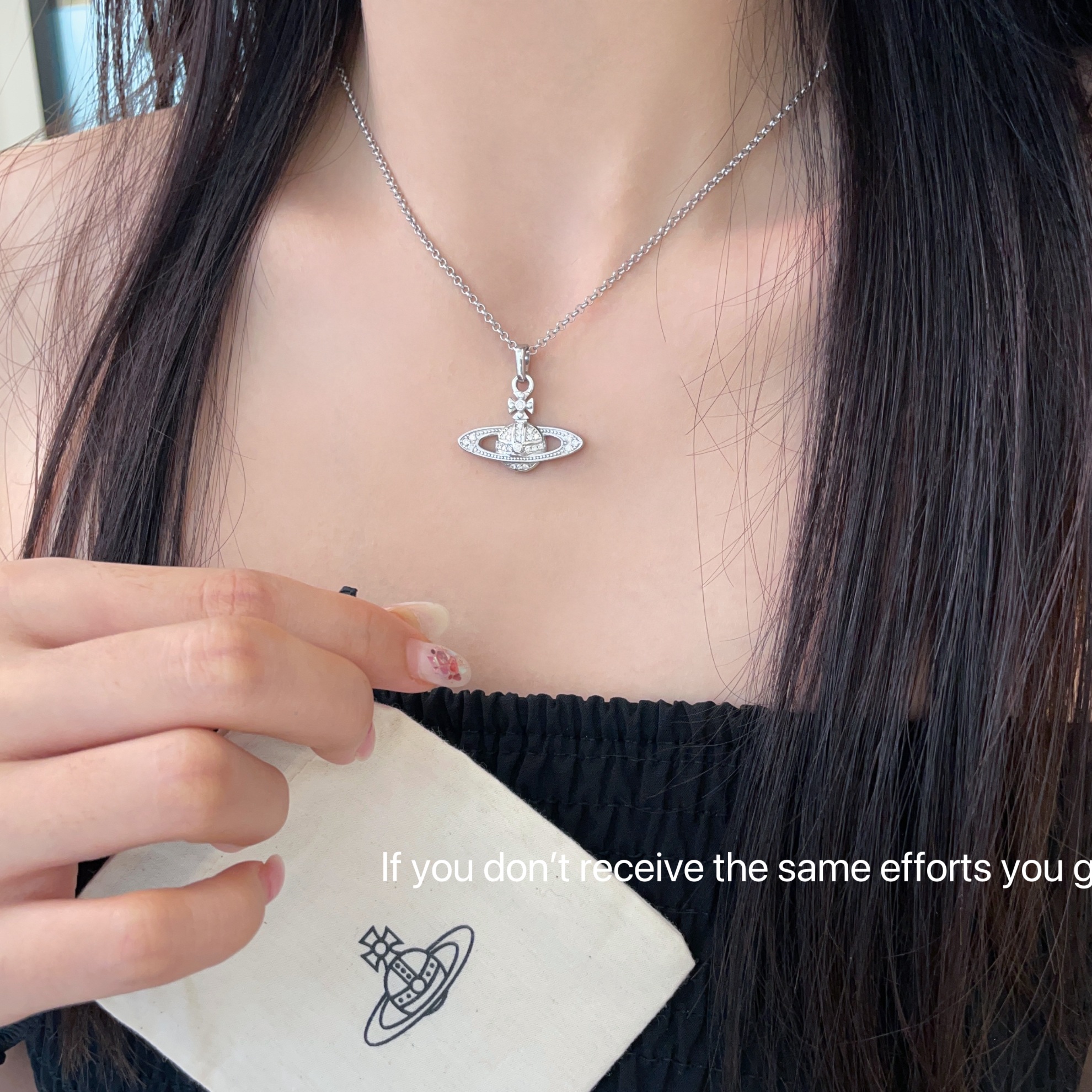 S925 sterling silver Queen Mother of the West Vivienne full zirconium Saturn necklace light luxury personality ins high-end sense gold-plated collarbone chain