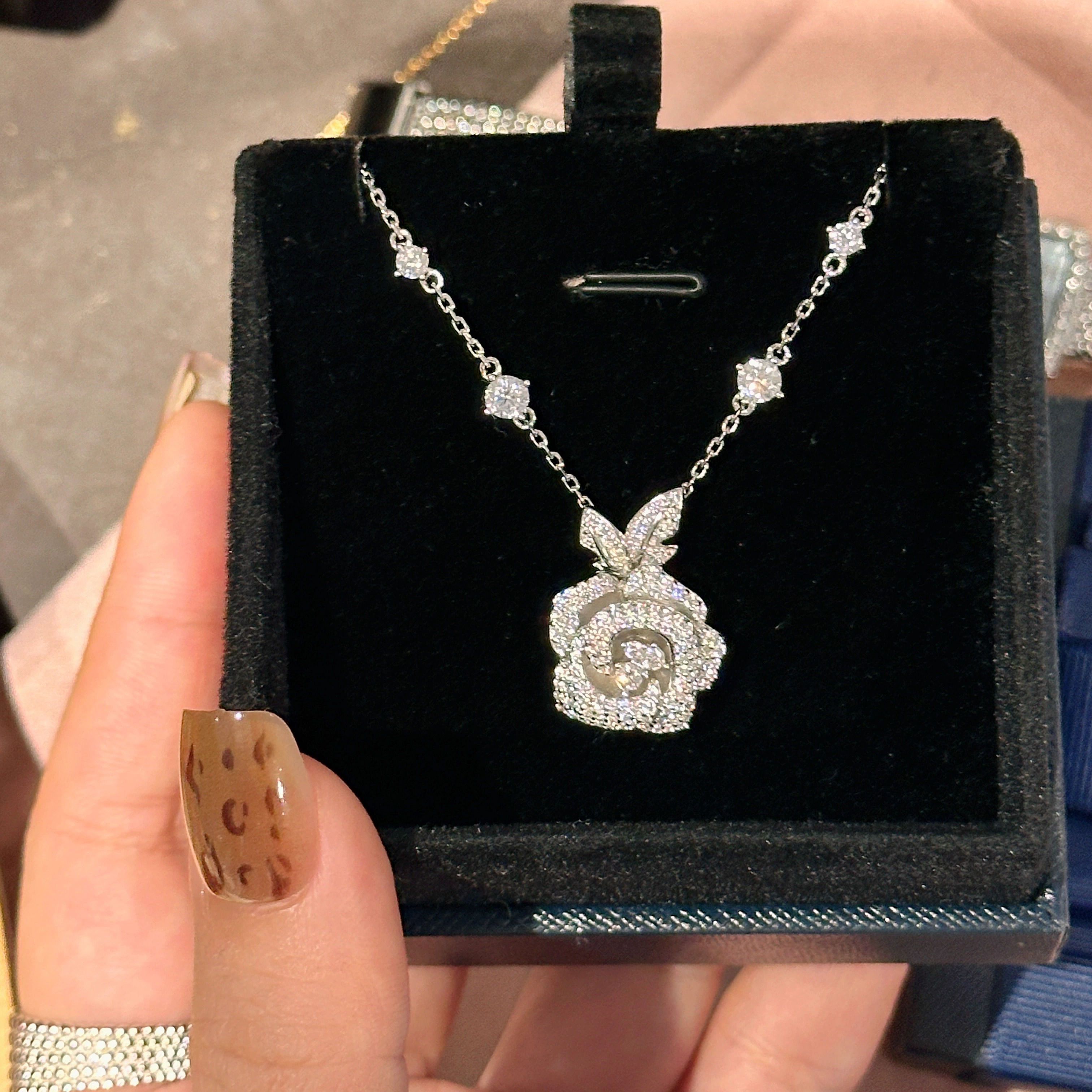 Four-diamond super flash rose necklace women's 925 sterling silver gold-plated temperament celebrity style niche design full diamond collarbone chain