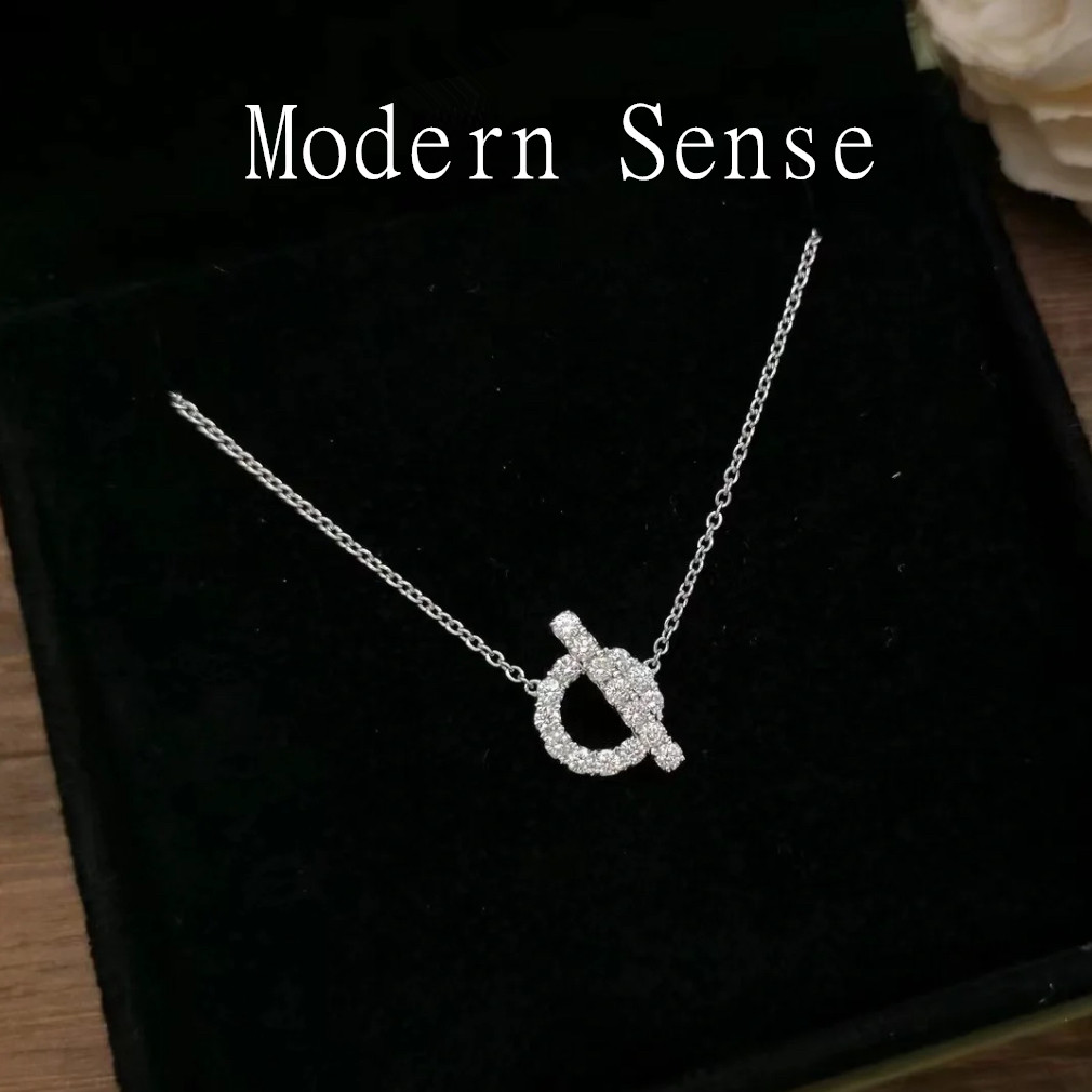 Modern Holy Jewelry S925 sterling silver pig nose necklace female full diamond Q letter type high-end sense collarbone chain birthday present