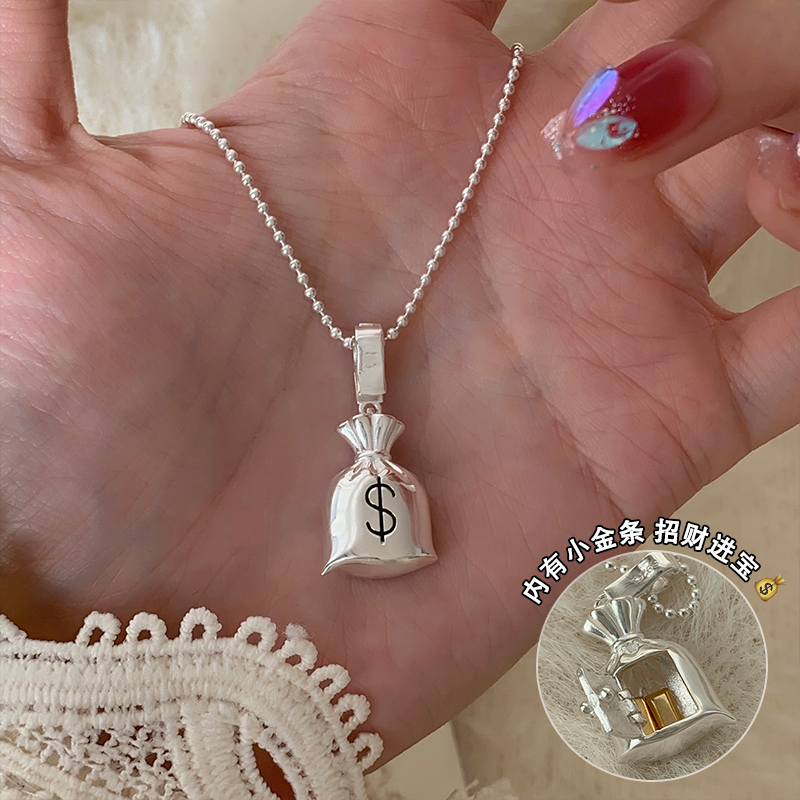 For the evening s925 sterling silver old money bag long sweater chain light luxury niche design creative necklace female high-end sense