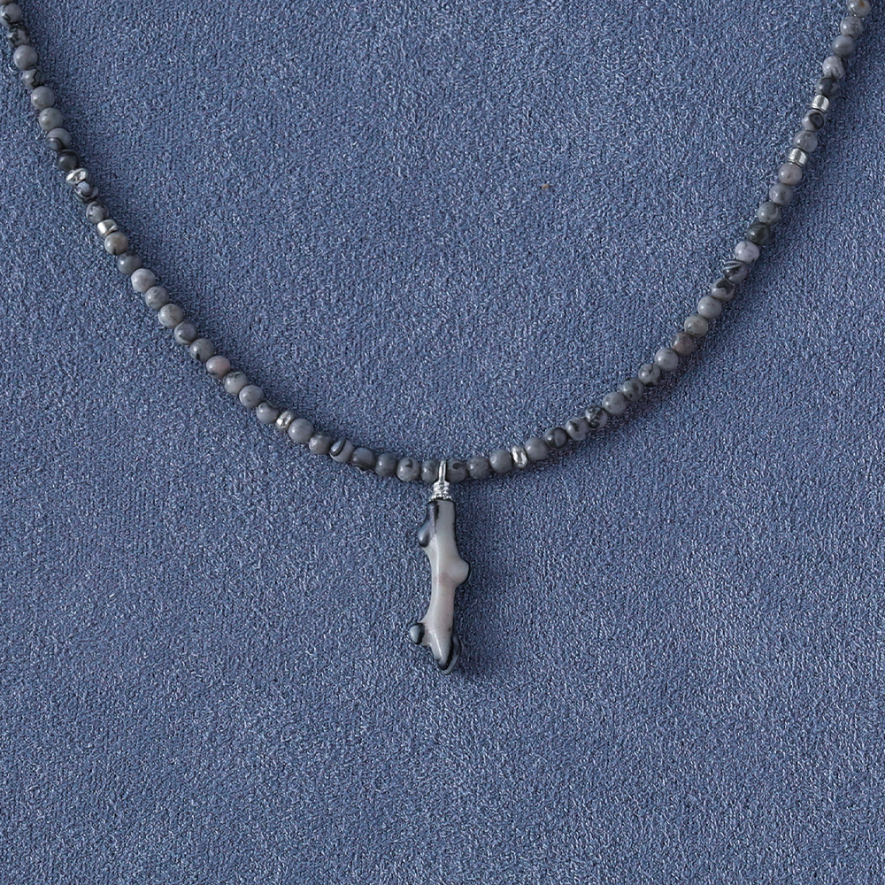 SALE E PEPE Pepper Salt Sterling Silver Map Stone Coral Beaded Necklace