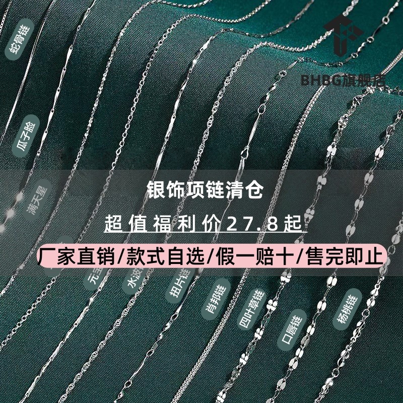 999 foot silver necklace women's collarbone chain necklace naked chain without pendant 925 sterling silver box chain plain chain cross single chain