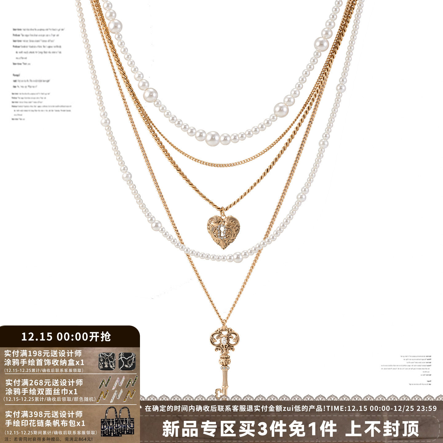 SUMIYAKI Vintage Love Lock Cylinder Series Multi-layer Pearl Necklace Niche Sweater Chain Detachable