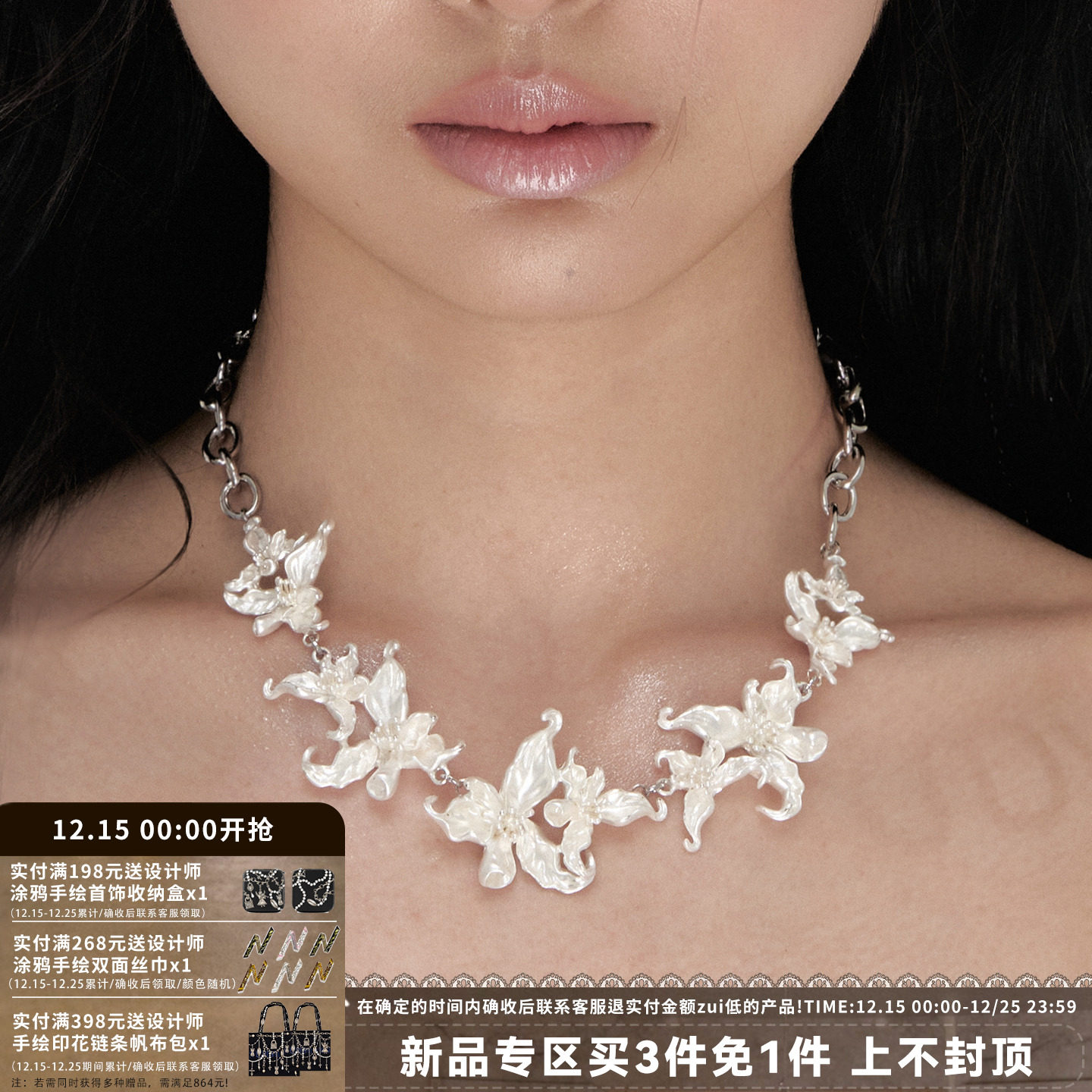 [Star same style] SUMIYAKI pale telling series pure white iris necklace niche choker girl