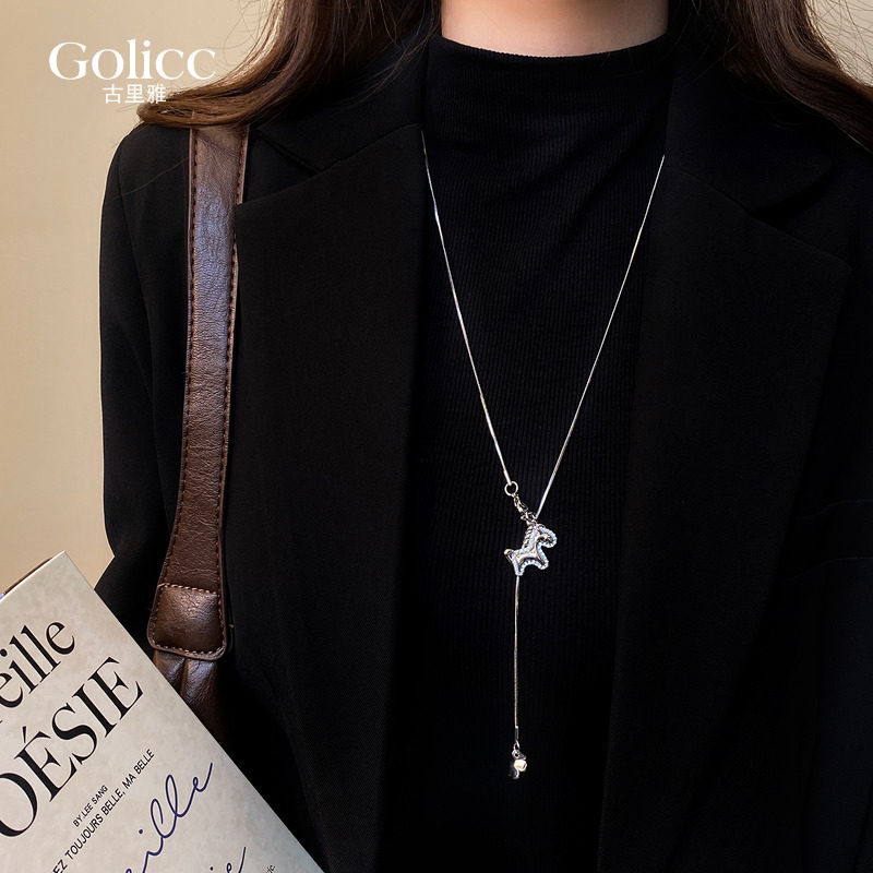 Silver dot diamond pony pendant long necklace women's autumn and winter atmosphere high-end high-end sense light luxury niche sweater chain accessories