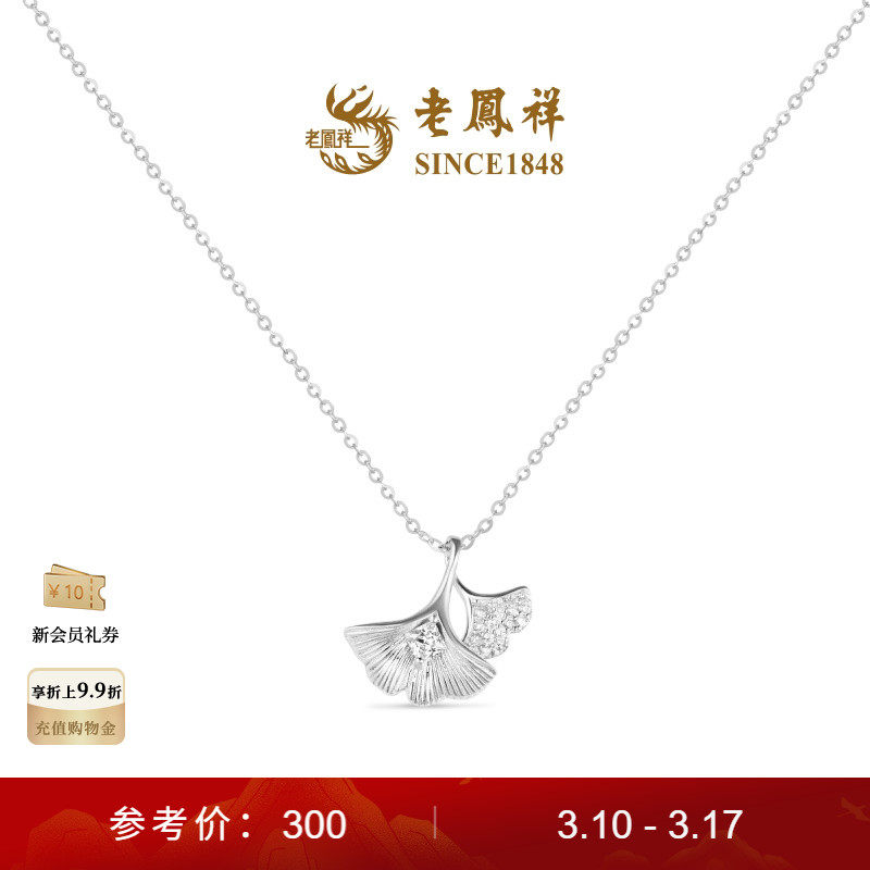 Lao Fengxiang Sansheng is fortunate to have a three-dimensional ginkgo biloba 925 silver necklace holiday women's gift