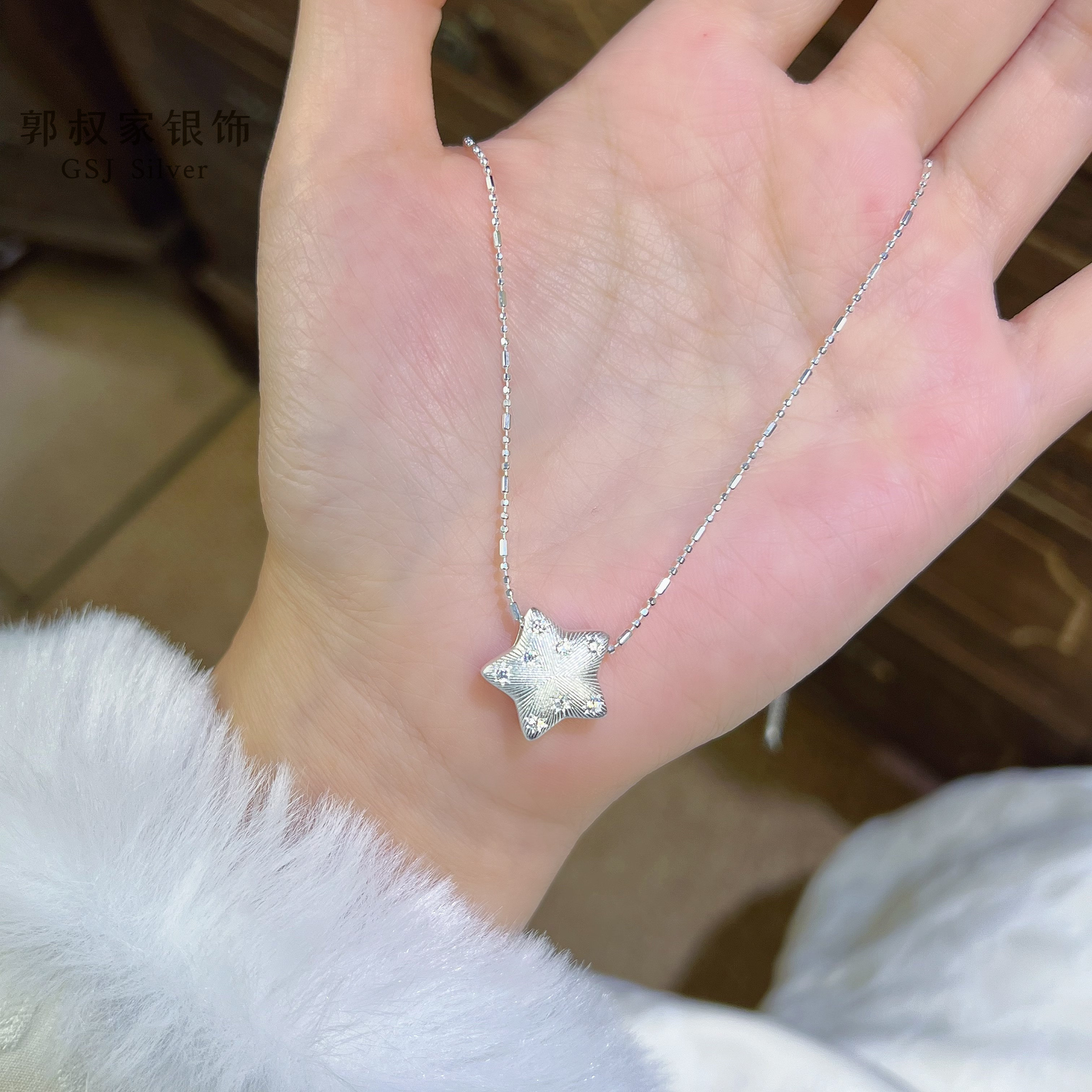 "Stars" full silver 999 star necklace high-end light luxury niche exquisite collarbone chain chain for gift girls