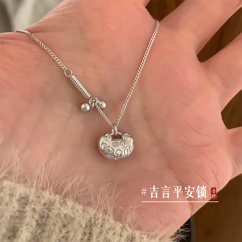 Sterling silver 999 Jiyan Ping An lock necklace women's 2026 new light luxury niche collarbone chain silver jewelry birthday gift