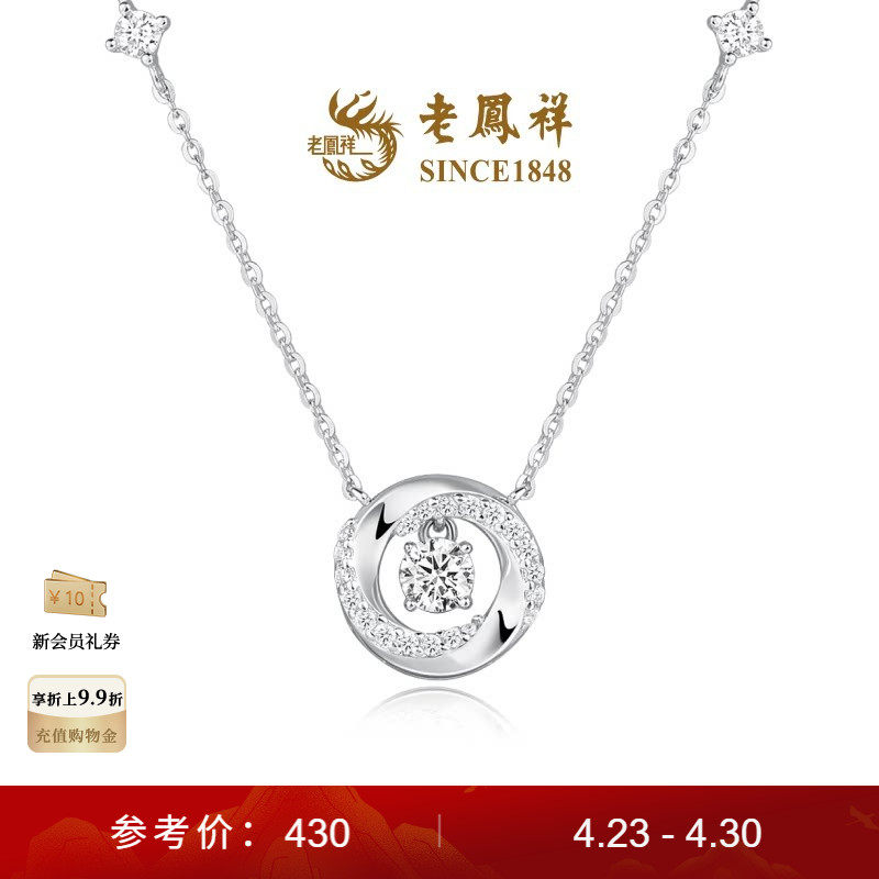 Lao Fengxiang Mobius ring star moon accompanied by gypsophila 925 silver necklace women's 520 gift