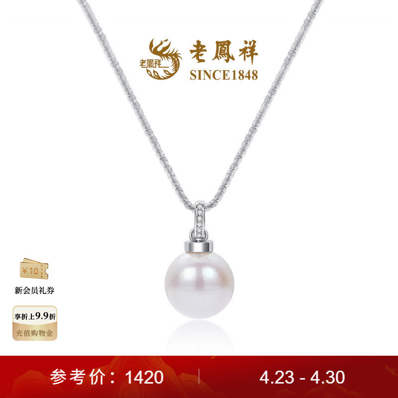 Lao Fengxiang simple small light bulb 925 silver freshwater pearl necklace necklace for mother 520 gift