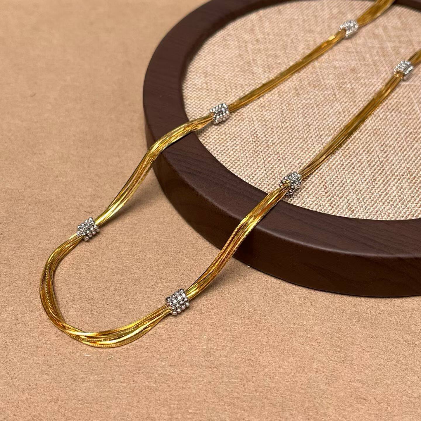 Light luxury exquisite niche design gold thin piece necklace women's collarbone chain Japanese and Korean S925 sterling silver stacked plain chain simple