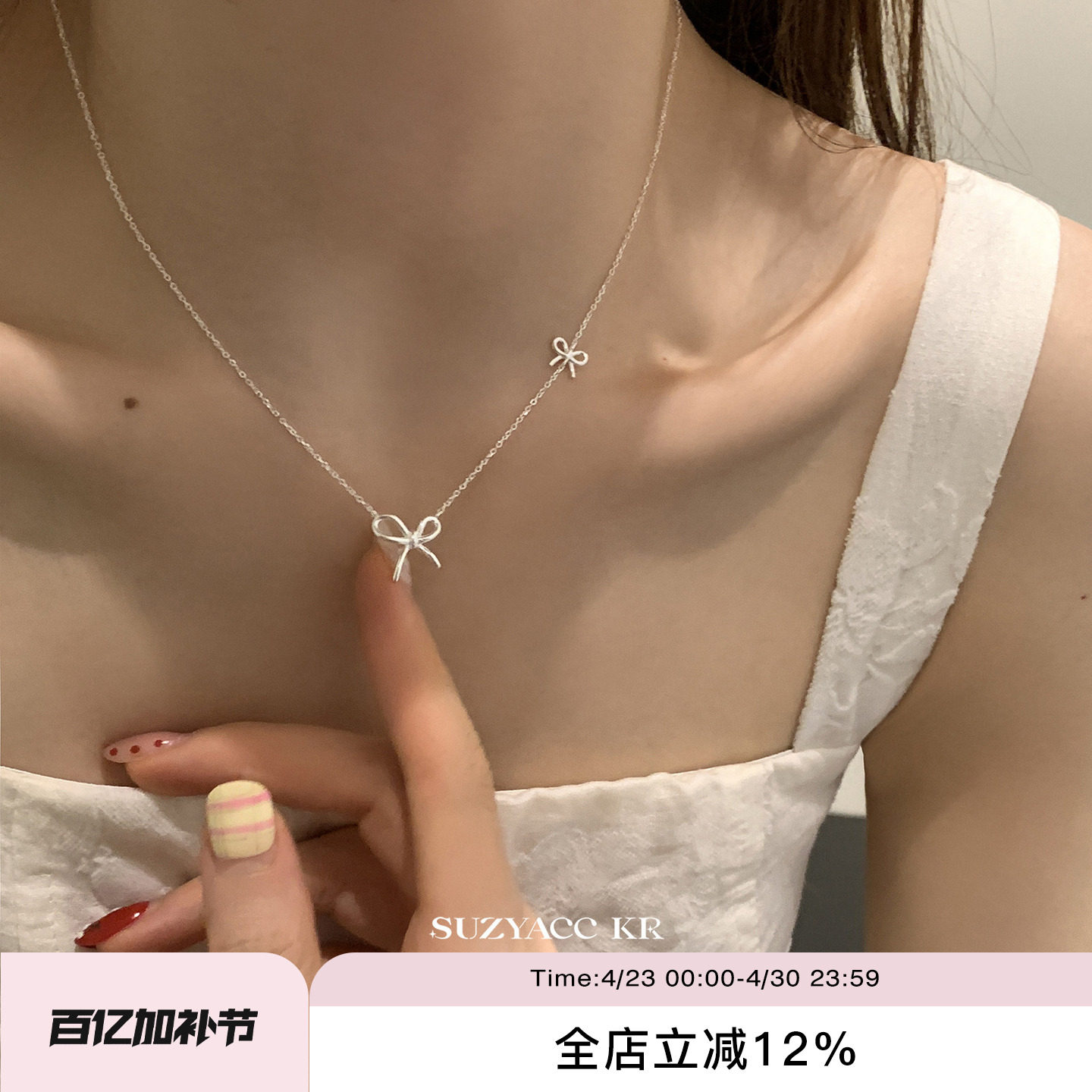 suzyacc kr sterling silver bow necklace 2026 new sweet ins simple niche high-end collarbone chain