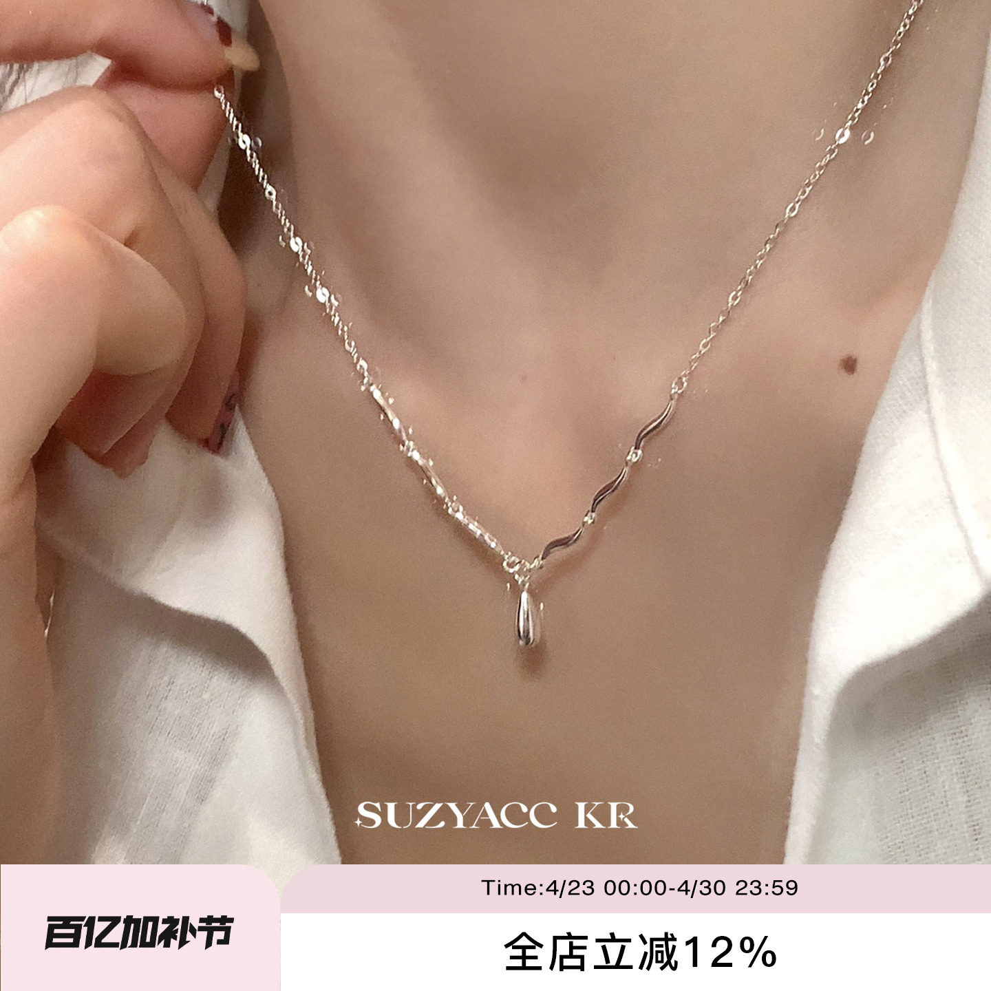 suzyacc kr sterling silver drop necklace 2026 new light luxury niche high-end collarbone chain simple sweater chain