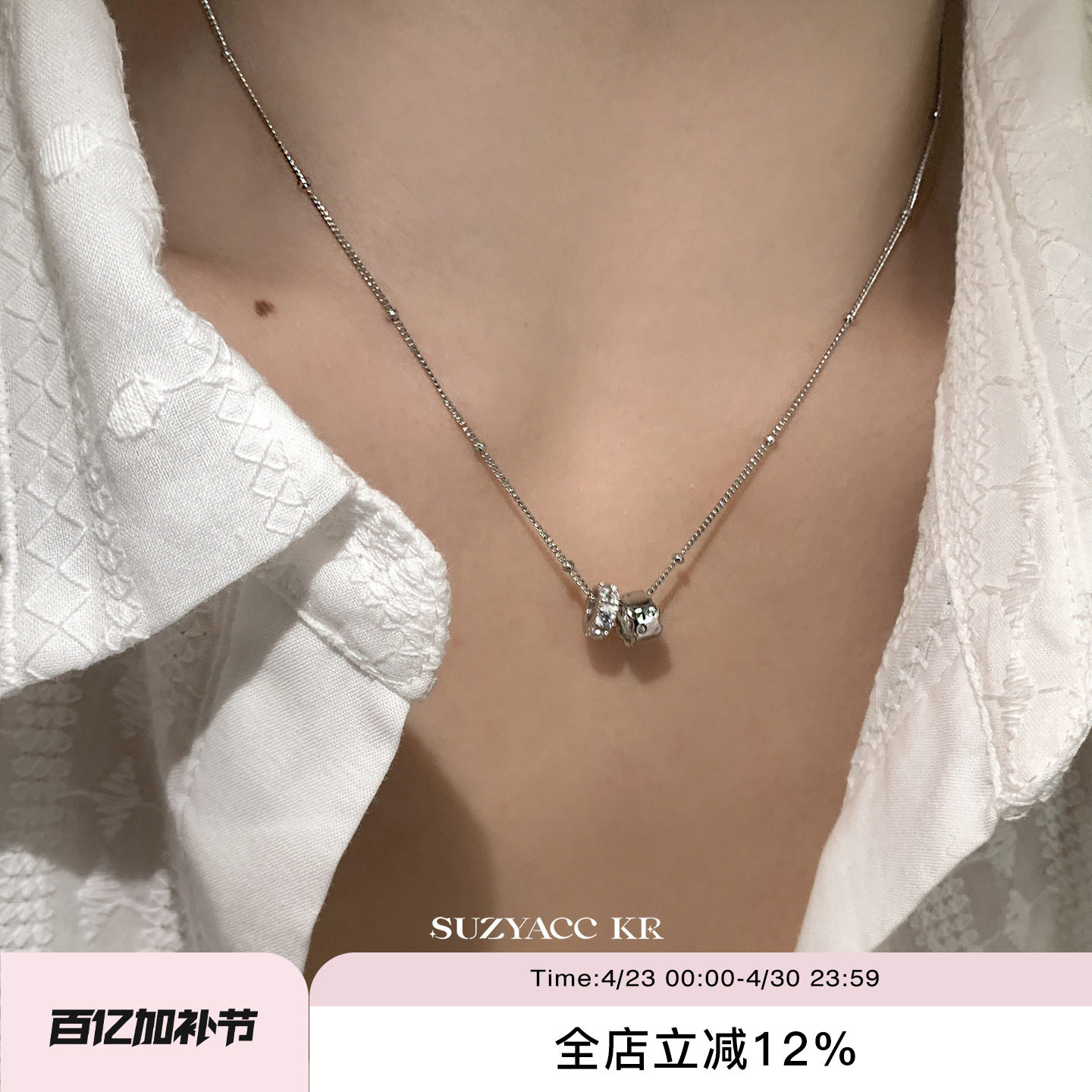 suzyacc kr sterling silver synthetic zircon double circle sparkling diamond necklace women's versatile high-end sense light luxury niche sweater chain