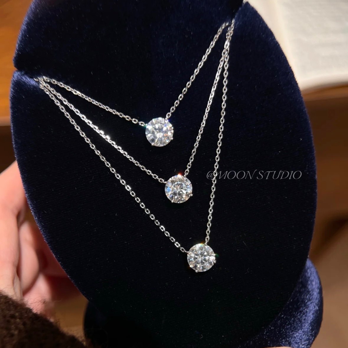 Zhao Lusi's four-pronged moissanite S925 sterling silver necklace booger diamond light luxury niche design single diamond collarbone chain