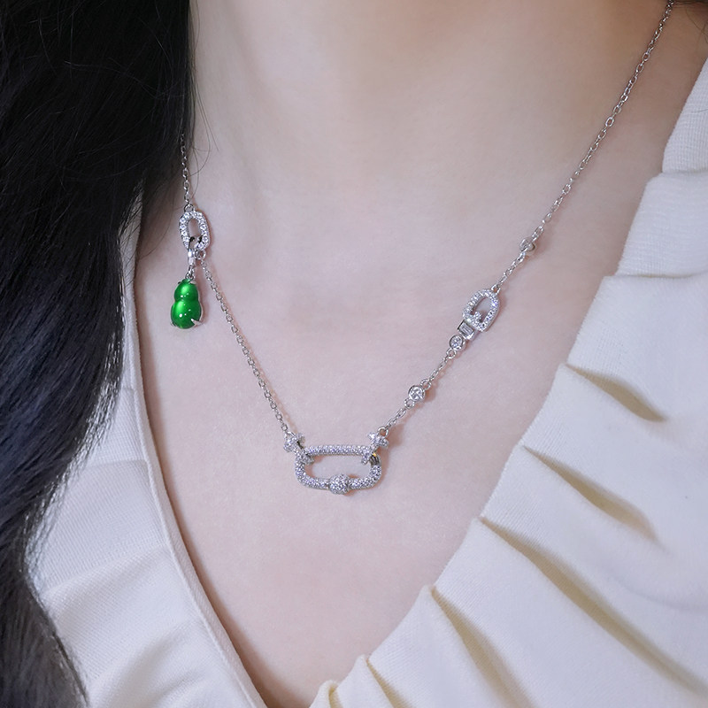 Daiyue 925 silver high cargo chain Italian process adjustment chain return buckle chain chalcedony yang green small drip pendant