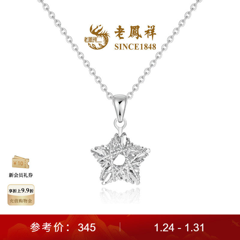 Lao Fengxiang star lucky star five-pointed star hollow 925 silver necklace collarbone chain women's New Year's gift