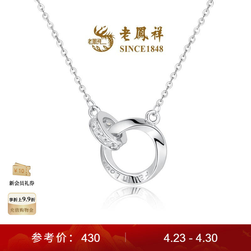 Lao Fengxiang Mobius ring ring baby's breath 925 silver necklace pendant women's 520 gift
