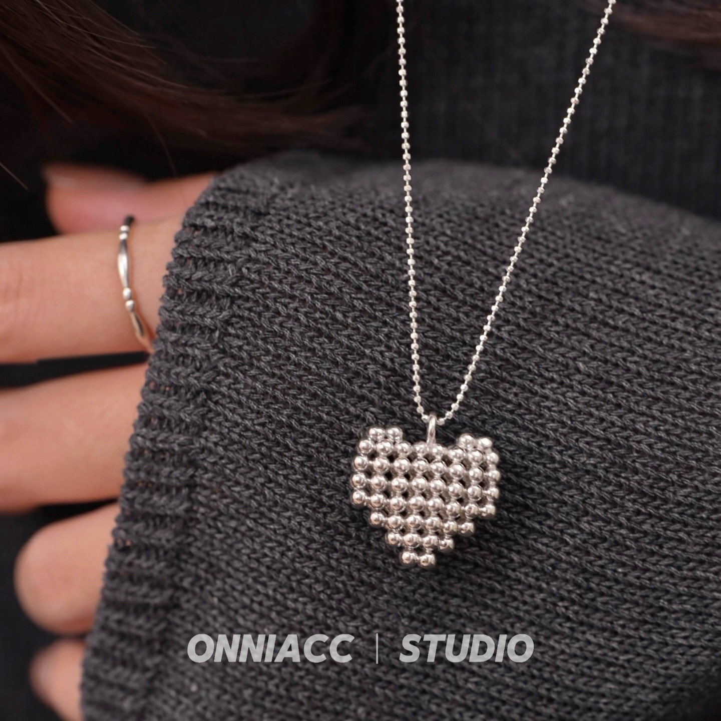 Three-dimensional heart-shaped love sterling silver necklace women's long sweater chain accessories autumn and winter high-end sense light luxury niche simplicity