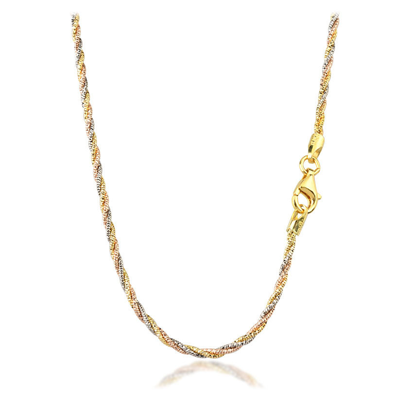925 sterling silver plated 22k gold American necklace twist chain bamboo chain plain chain men's and women's thin collarbone chain long without pendant