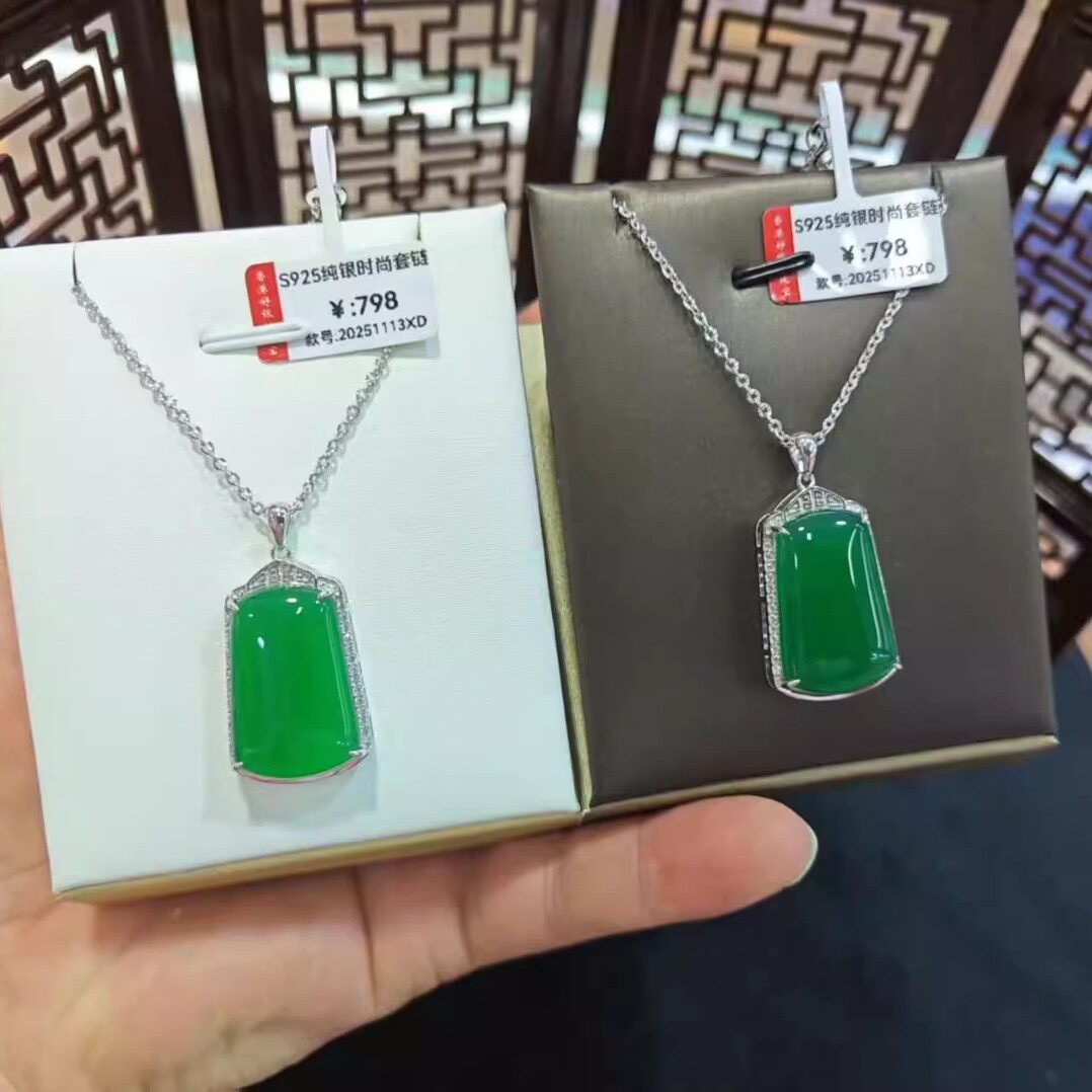 S925 sterling silver inlaid natural chrysoprase safe and safe brand ice seed yang green pendant women's necklace birthday gift
