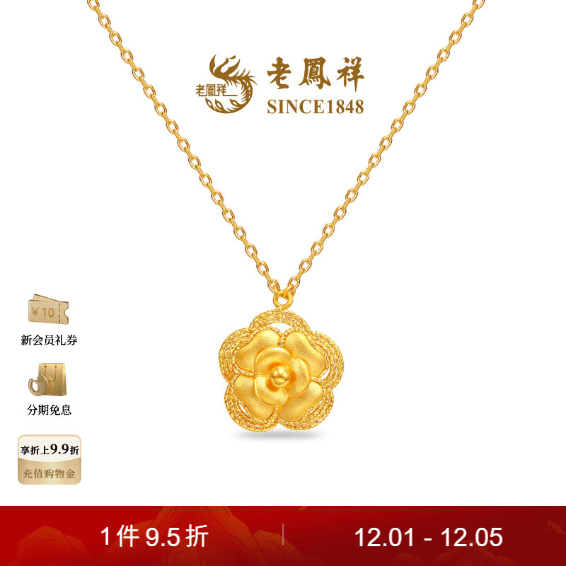 Lao Fengxiang retro blooming rose gold pure gold necklace female gift price
